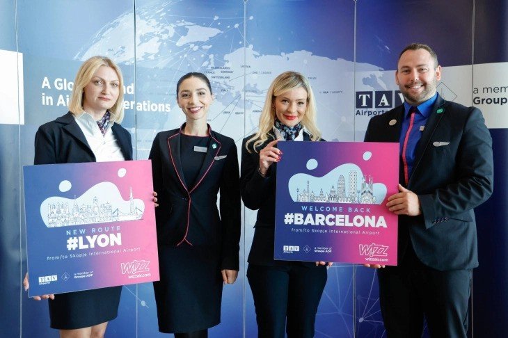 TAV Macedonia and Wizz Air told a press conference on Monday that as of May 3, the Skopje International Airport connects with Barcelona and Lyon. The flights will be operated by low-cost carrier Wizz Air with subsidies from the Government, CE Report quotes MIA.